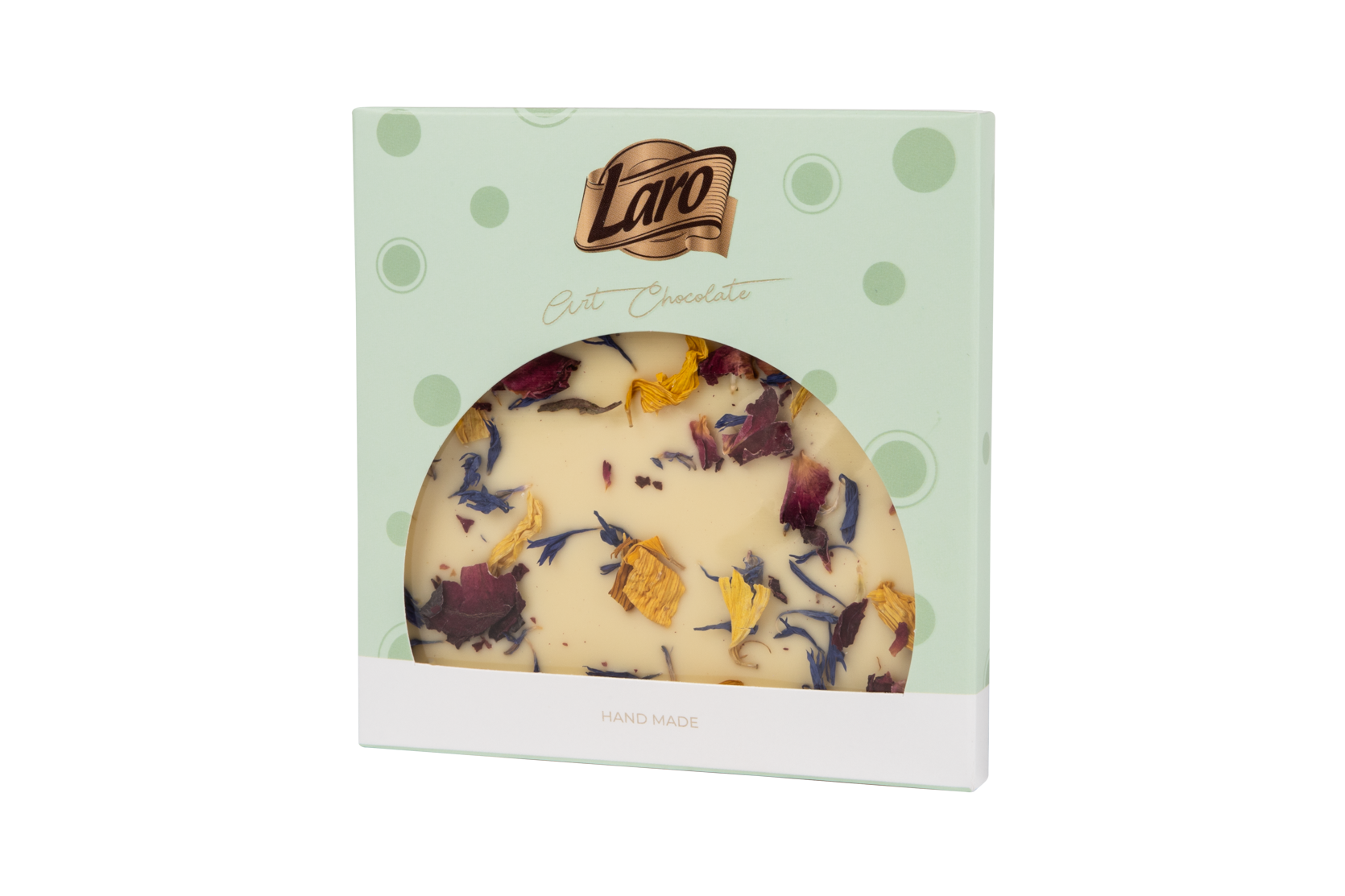 Czekolada biała z płatkami kwiatów to propozycja oparta na kontrastach tekstury i wyglądu. Gładka, kremowa czekolada stanowi tło dla subtelnych dodatków roślinnych, które nadają tabliczce elegancki, uporządkowany charakter.
