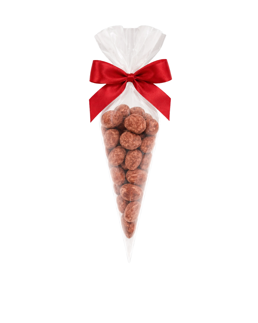 Maliny liofilizowane w czekoladzie mlecznej pudrowane maliną 60 g – rożek z kokardką