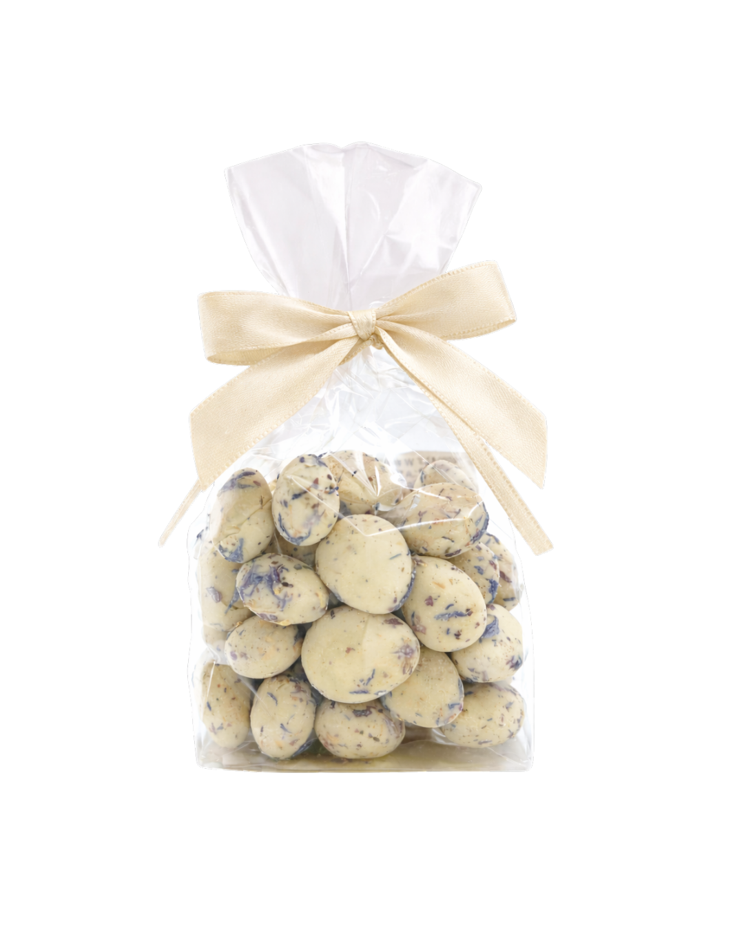 Migdały w czekoladzie białej z płatkami kwiatów 100 g – Komunia