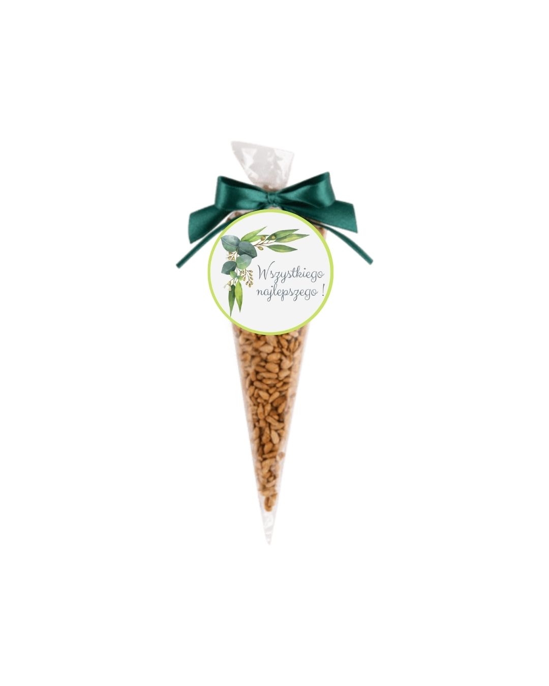 Dzięki efektownemu opakowaniu w rożek z kokardką, słonecznik w karmelu staje się gotowym prezentem – praktycznym i estetycznym.